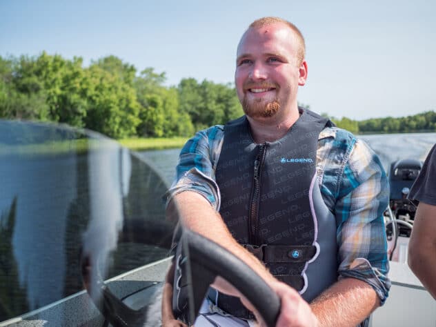 Le ProSport 14 a tout ce dont vous avez besoin : un coffre à cannes verrouillable, un grand vivier, une grande plate-forme de pêche au lancer à l'avant avec rangement et un intérieur en vinyle facile à nettoyer. Et avec ce bateau, vous n'aurez plus jamais à sauter par-dessus les bancs ! La pêche devient un jeu d'enfant.