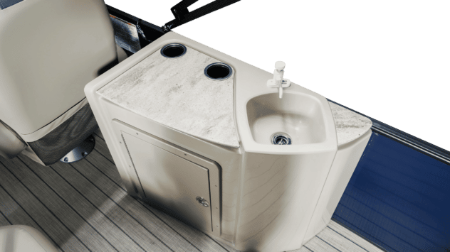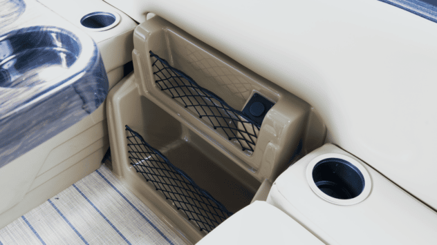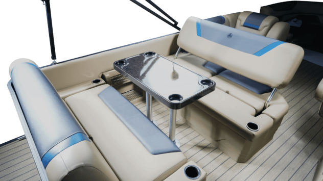 - Console avec porte-gobelets intégrés et repos des pieds